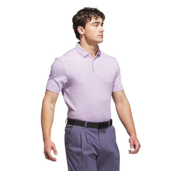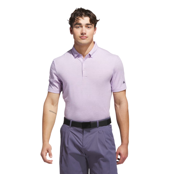 Whether you're teeing off or winding down, this adidas golf polo shirt brings easy-moving comfort. The soft jersey and subtle print fade keep it casual.