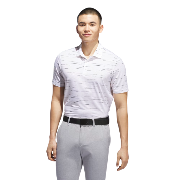 Performance and comfort go hand in hand in this adidas golf polo. Mesh knit jersey increases airflow, and a subtle print adds a modern look.
