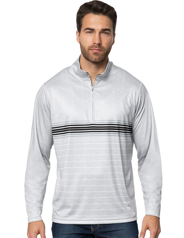 Stay warm and comfortable while playing the game with this Bullseye Quarter-Zip Pullover from Antigua. The plain striped design makes this versatile, meaning you can wear it with almost anything. This lightweight top is suitable for mild temperatures, making it the perfect addition to your look on brisk golf days.