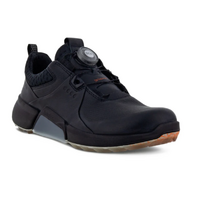 The ECCO W GOLF BIOM® H4 is made in durable leather and GORE-TEX waterproof technology to keep your feet dry even in wet playing conditions. The ECCO MTN GRIP outsole features our signature FLUIDFORM™ Technology, as well as an eye-catching PU midsole with TPU inserts on either side that securely hug your foot and offer added stability. The elevated appearance and understated design will ensure you look good on and off the green.