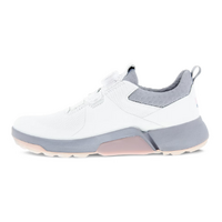 The ECCO W GOLF BIOM® H4 is made in durable leather and GORE-TEX waterproof technology to keep your feet dry even in wet playing conditions. The ECCO MTN GRIP outsole features our signature FLUIDFORM™ Technology, as well as an eye-catching PU midsole with TPU inserts on either side that securely hug your foot and offer added stability. The elevated appearance and understated design will ensure you look good on and off the green.