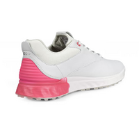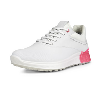 Refreshed with a new upper design and innovative technology, the waterproof ECCO W GOLF S-THREE blends superior performance with modern style for the course and beyond. Embossed and printed details contribute to the premium aesthetic of a woman's hybrid golf shoe that has been upgraded with X-TENSA INVISIBLE TECHNOLOGY for extra stability. The E-DTS® outsole provides excellent traction while the GORE-TEX Technology supplies 100% waterproof protection. The ECCO ZONAL FLUIDFORM™ innovation creates three distinct zones of rigidity in the midsole, ensuring the ideal balance of cushioning and stability.