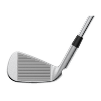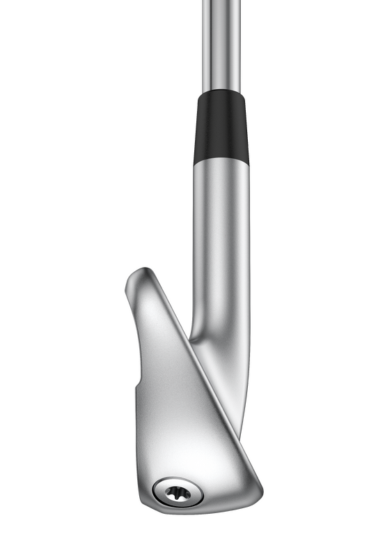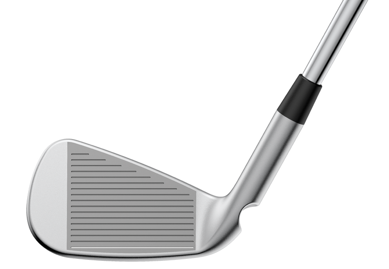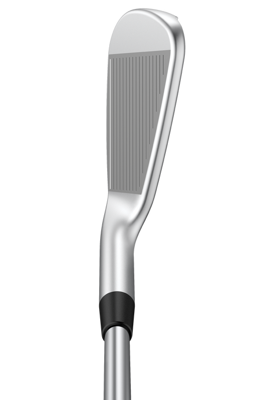 The forged, variable-thickness maraging-steel face is 9% thinner for greater flex and creates a metal-wood-like bending in the transition areas (sole and top), resulting in faster ball speeds and higher max height.