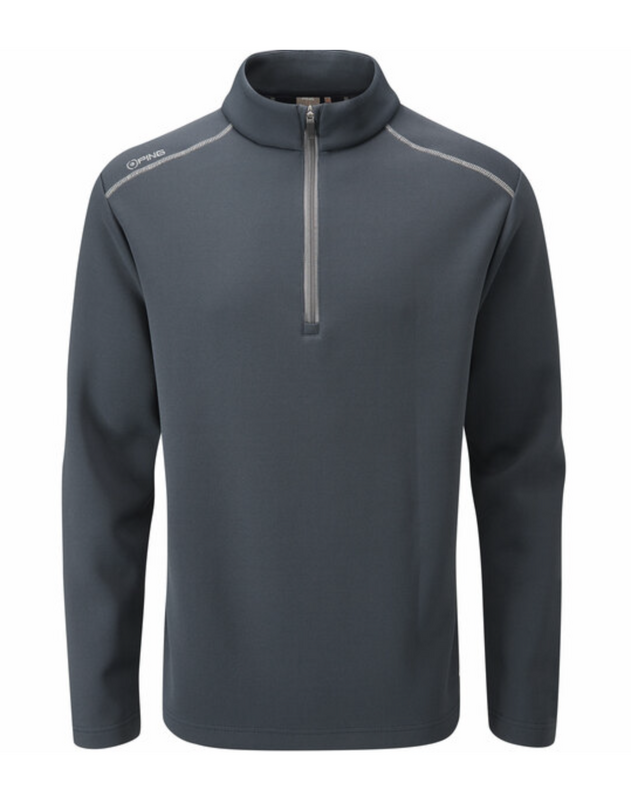 The Ping Ramsey Mid Layer Golf Sweater in navy adds warmth to the body when golfing in cold weather. The stretch properties of the Ping Ramsey Golf Sweater adapt to your range of movement, so you can achieve a full swing and stay warm!