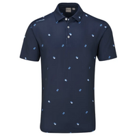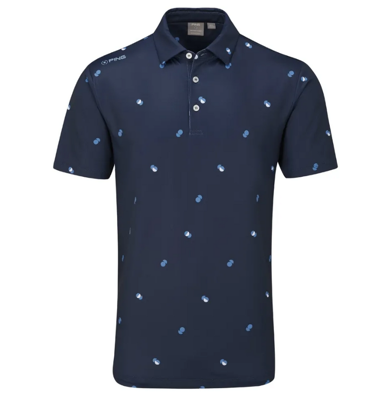 This polo showcases an all-over micro print, paying homage to the iconic PING split ball, making it a must-have for any golfer. With the PING Eye logo on the shoulder and the Eye Mark logo on the back shoulder, you'll stand out in style on the green. Featuring a concealed button-down collar, this polo exudes elegance and versatility. Crafted from a blend of 91% polyester and 9% elastane, it offers exceptional stretch properties for maximum flexibility during your swing. Its antibacterial and moisture-wicking fabric ensures freshness and comfort throughout your game, while its crease-resistant and quick-drying qualities make it easy to care for. Embrace sustainability with this polo's recycled content. Step up your golf apparel game with this high-performance polo shirt.