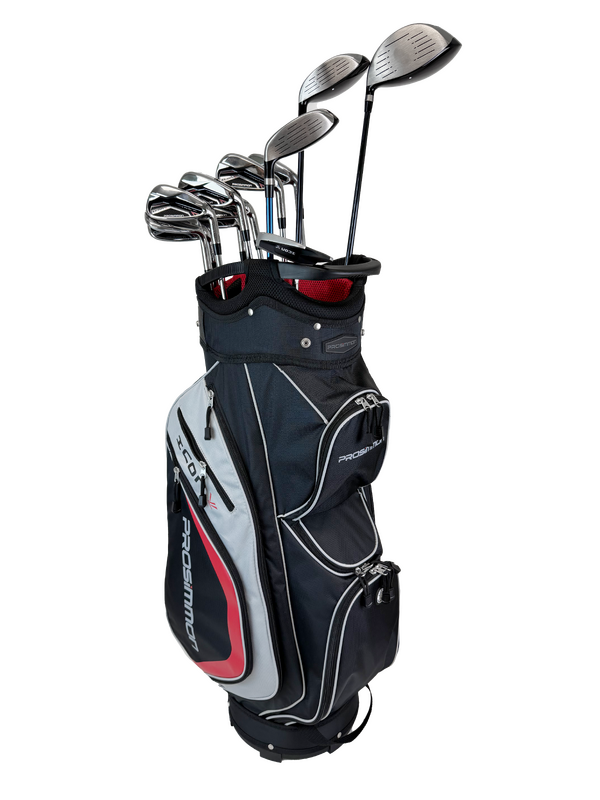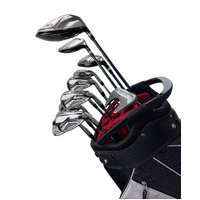 All clubs are fitted with multi-compound grips for superior comfort and control. The set is completed with a deluxe 14-hole cart-style bag featuring an ergonomic top handle, multi-material construction, eight zippered pockets, and a large insulated cooler pocket. Deluxe headcovers for the driver, fairway, and hybrid are included.