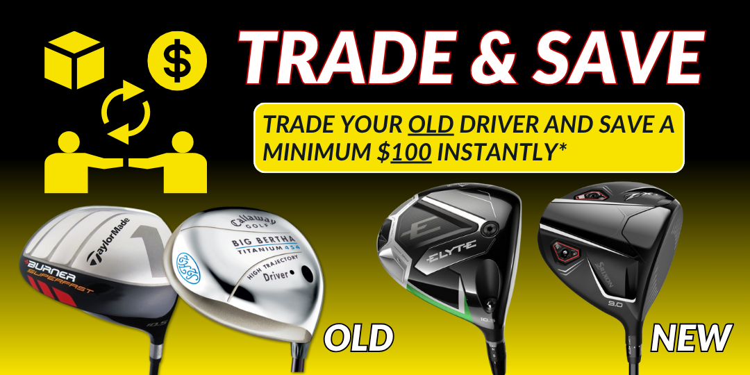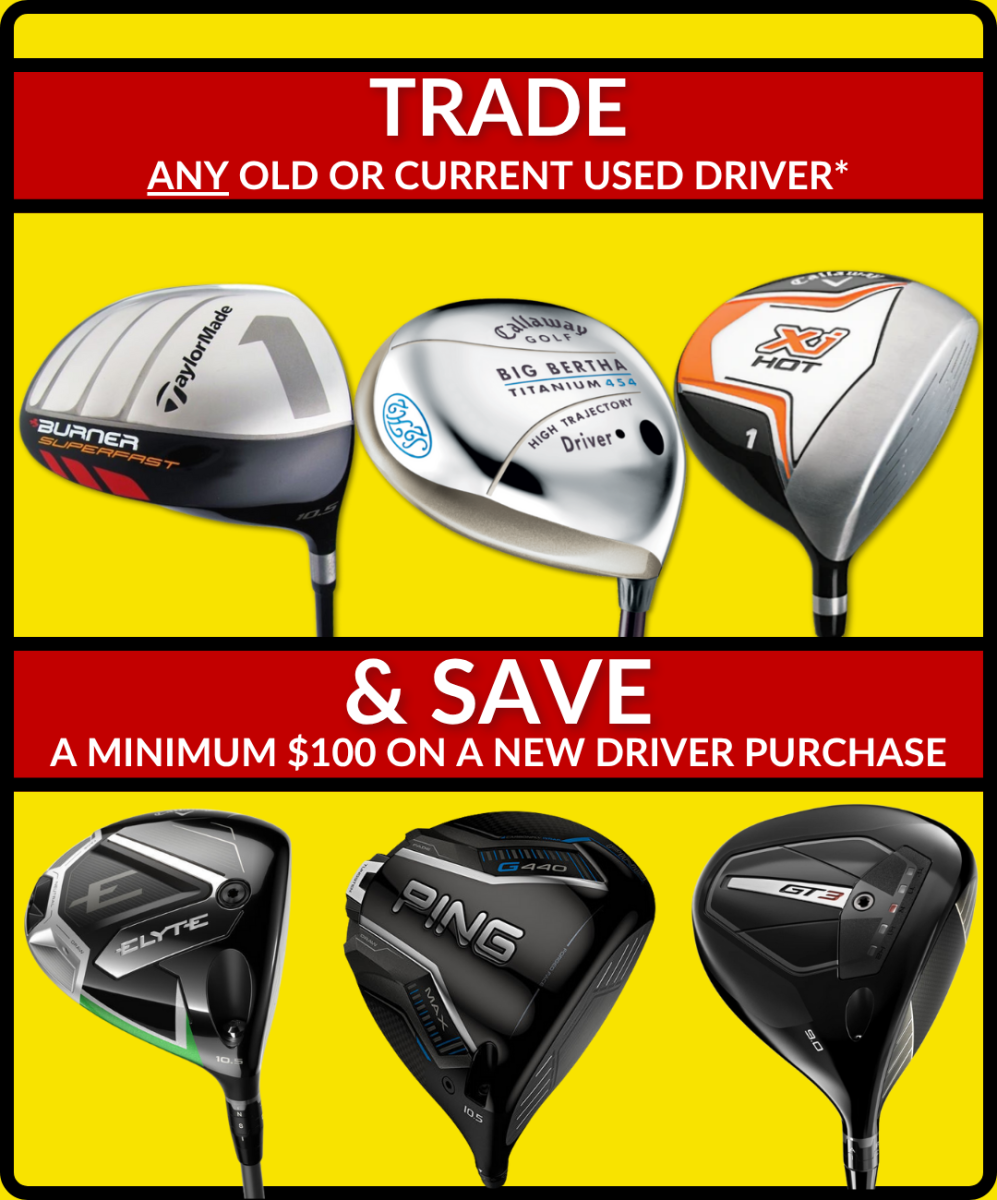 That’s right, if you pop into any of our 16 Golf World or Golf Mart retail outlets between the 3rd of October to the 31st of October 2024, with your old or current used driver and you will get a MINIMUM $100 trade-in-value for a brand new golf driver! Below T&C’s apply.